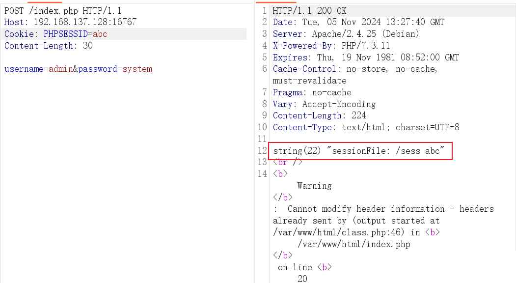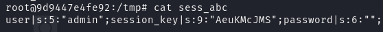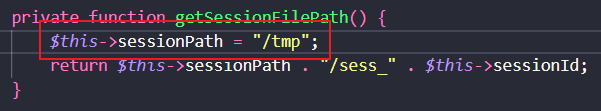 再次发包,看到 sessionFile 得到的值为 /sess_abc ,而本地内部默认存储的是 /tmp/sess_xx 路径,因此本地的程序并不像理论上的进行运行