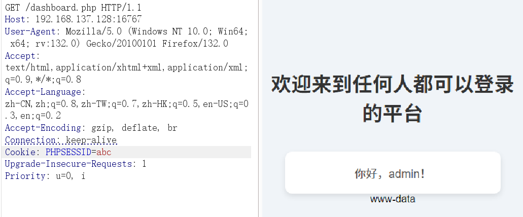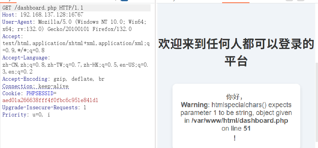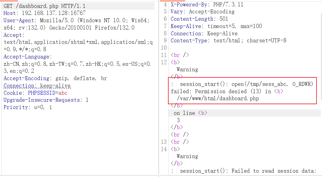 多次请求,将 session 写入,然后请求 dashboard.php ,本地测试成功