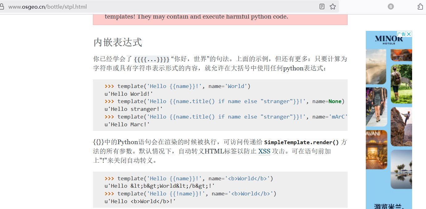我们翻看 Bottle文档模板引擎部分,能很轻易的发现模板注入