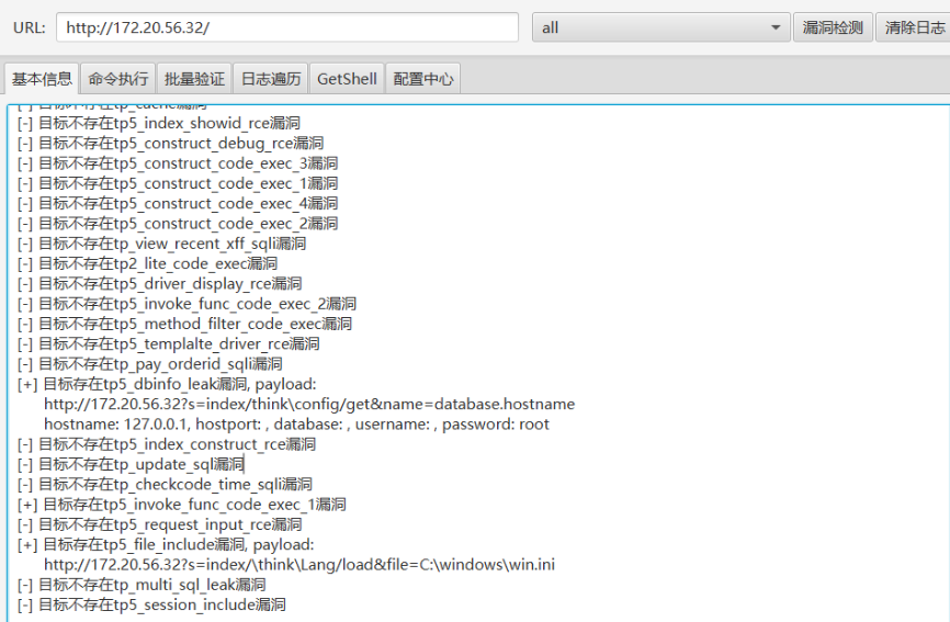使用 ThinkPHP 漏洞工具检测,检测出多个历史漏洞