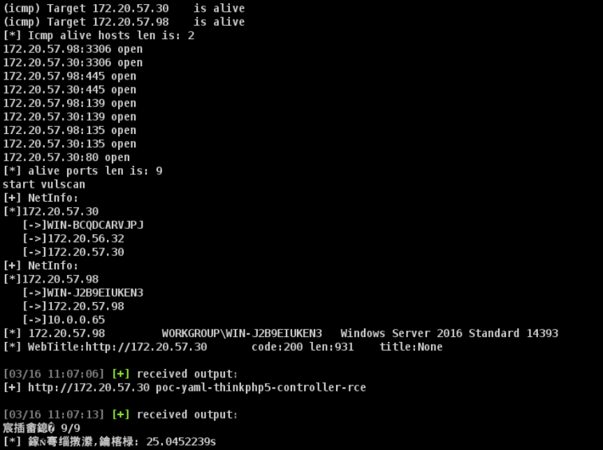 对 172.20.57.* 进行存活探测、服务及漏洞扫描