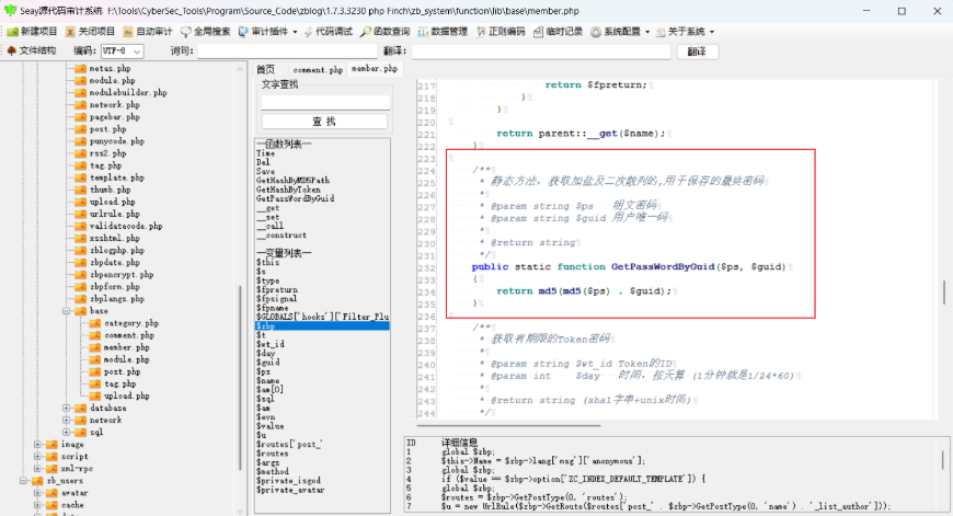 翻阅 zblogphp 1.7.3 源码,发现 /zb_system/function/lib/base/member.php 文件中写了 password 的生成方式