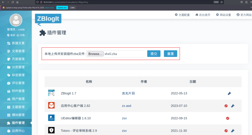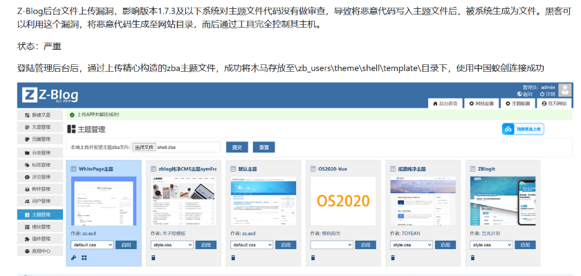 Z-Blog 后台存在模板文件 .zba 上传漏洞