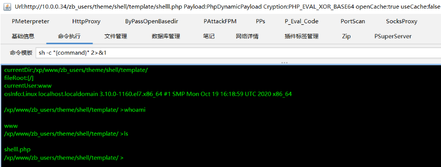 访问 http://ip/zb_users/theme/shell/template/shelll.php ,成功