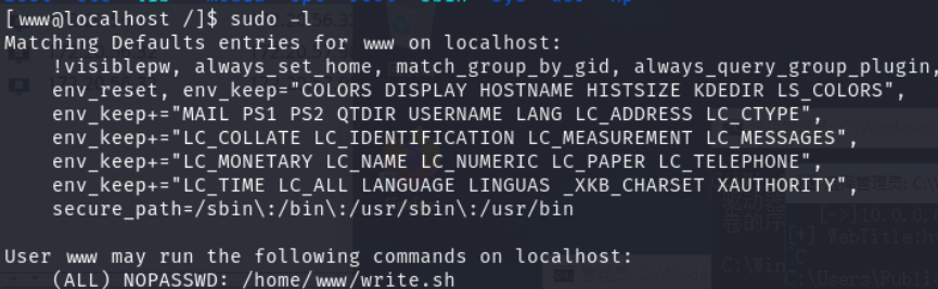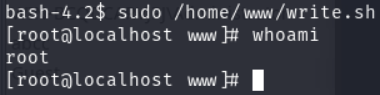 发现对 /home/www/write.sh 文件具有 root 权限且无需密码