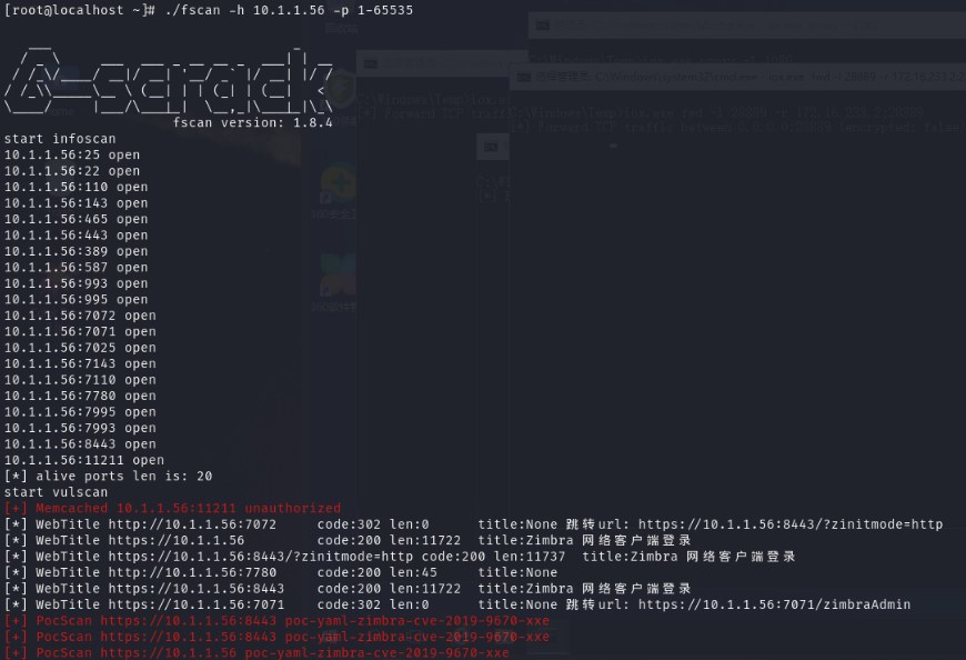 探测存活,发现10.1.1.56,对指定 IP 进行全端口扫描及漏洞扫描,发现存在 CVE-2019-9670 Vuln