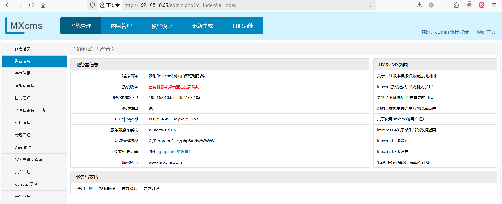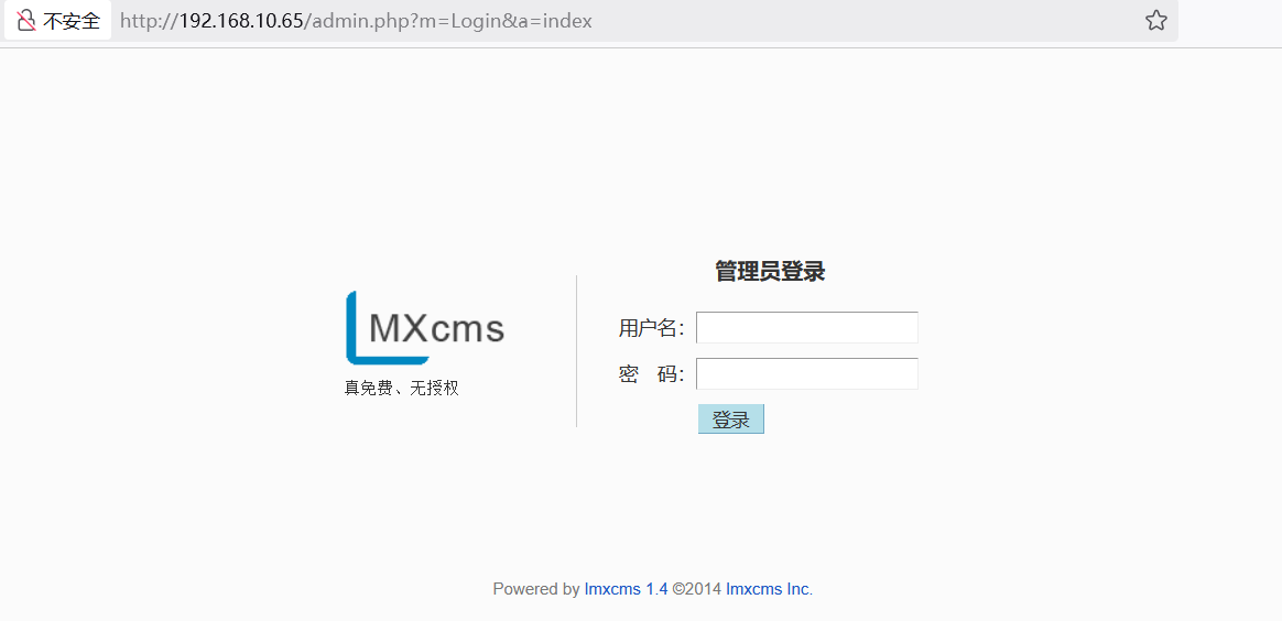 对 192.168.10.* 网段进行扫描,发现 10.65 搭建了 lmxcms