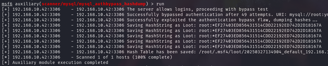 MSF 漏洞探测成功,返回了 root 的密码 hash