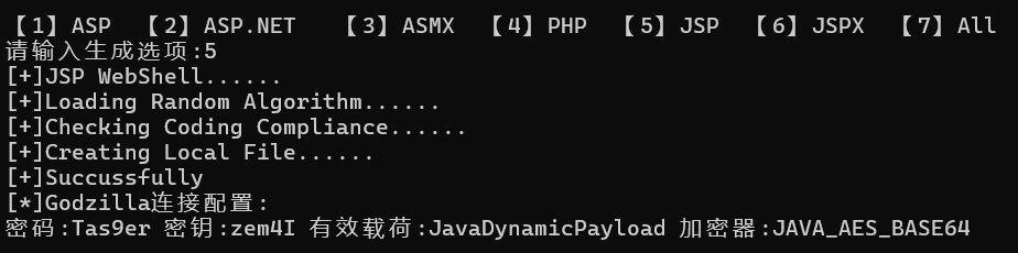 使用 ByPassGodzilla生成 JSP 马
