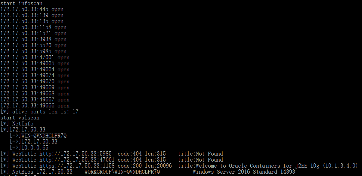 Fscan 扫描内网机器,Web 网站应该是 Orable 数据库的默认页面,没有漏洞