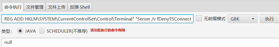命令执行返回 null,但目标本地是执行成功的,上线远程桌面