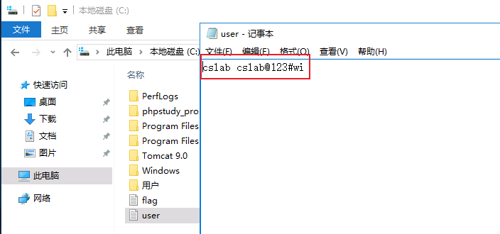 发现 C 盘底下存了一个用户名密码