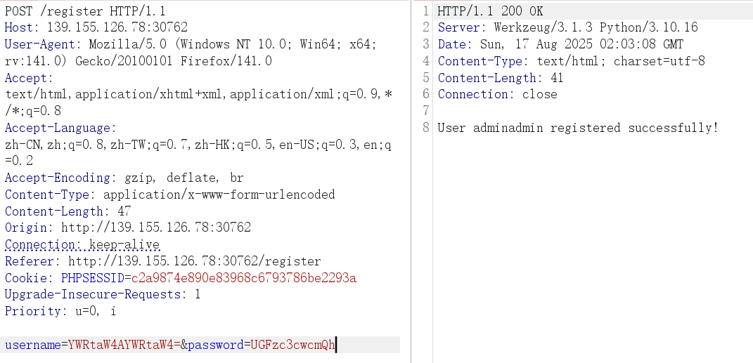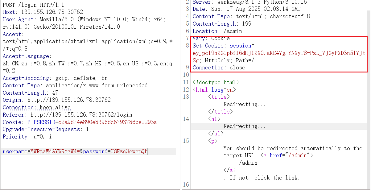1 username=YWRtaW4AYWRtaW4=&password=UGFzc3cwcmQh