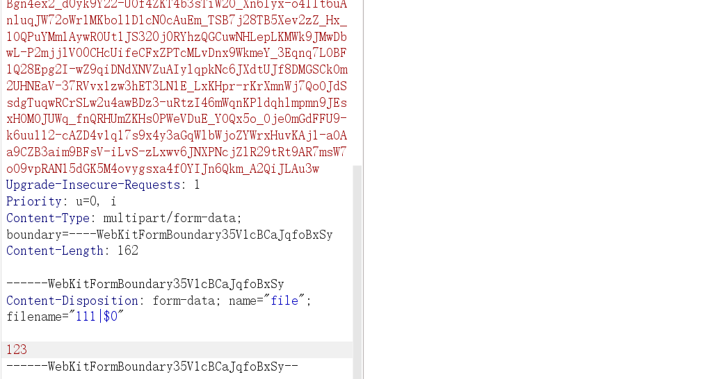 WAF 过滤了 * = & " % ; < > i a s h t o ! @ ( ) { } [ ] _ ^ ' ~ \ # ,没有过滤 |,用管道符插入 RCE