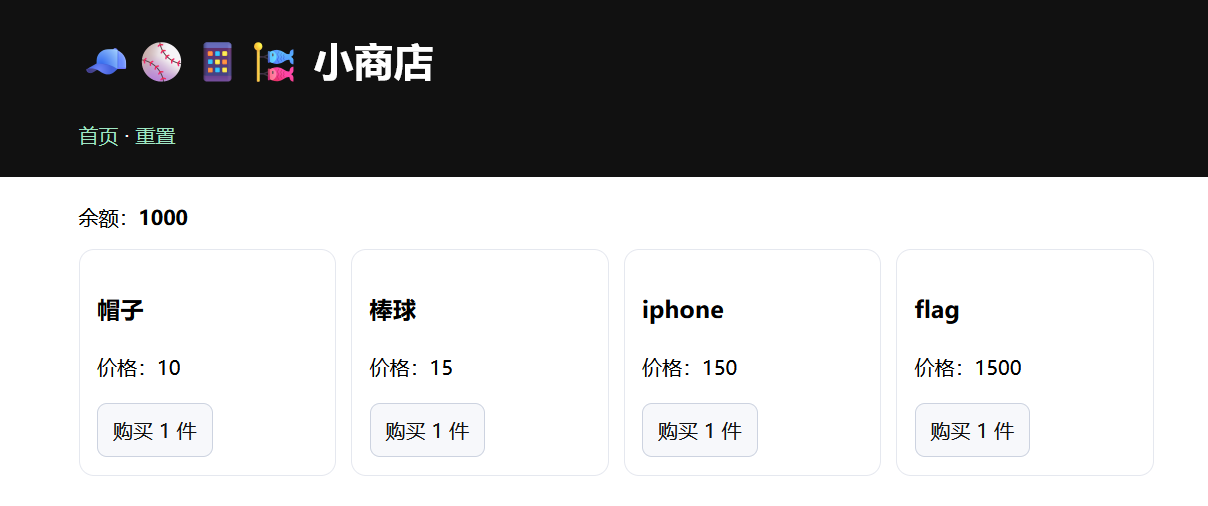 Easy_shop 队友看的这题做完忘截图,比赛时好像赛方直接提示了读 app.js 拿源码,赛后根据源码写了个靶机演示一下完整攻击链