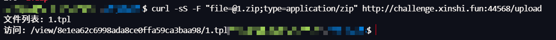 upload 路由给了一个文件上传的接口,/view/<md5>/<filename>路由调用了 template(),bottle 的模板引擎是能造成 RCE 的,黑名单没禁掉 思路是用 curl 上传,static/<filename> 路由允许读取静态文件并返回 payload
