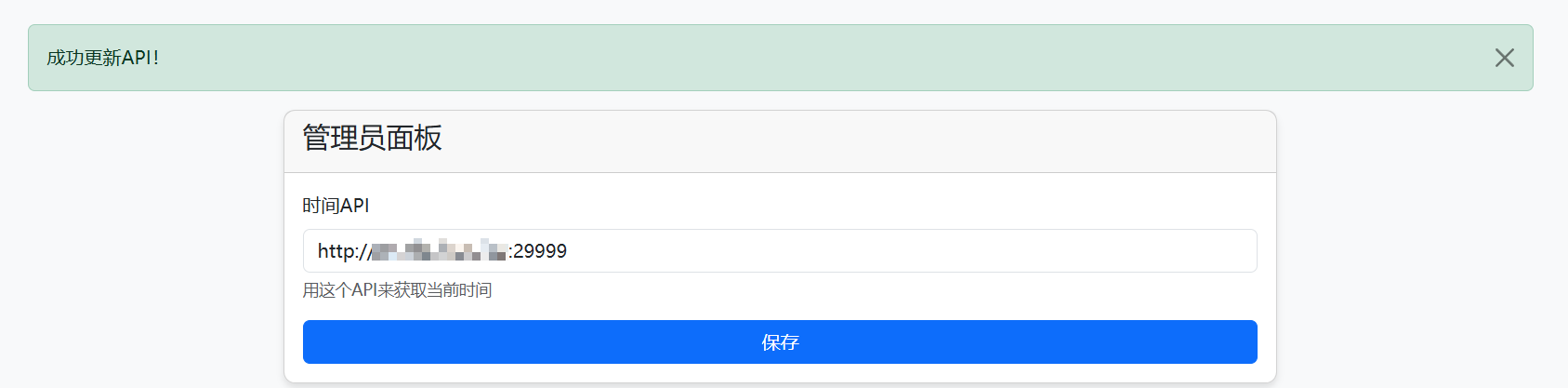 1 2 3 4 5 6 7 8 9 10 11 12 13 @app.route('/admin/settings', methods=['GET', 'POST']) @admin_required def admin_settings(): user = User.query.get(session['user_id']) if request.method == 'POST': new_api = request.form.get('time_api') user.time_api = new_api db.session.commit() flash('成功更新API!', 'success') return redirect(url_for('admin_settings')) return render_template('admin_settings.html', time_api=user.time_api)