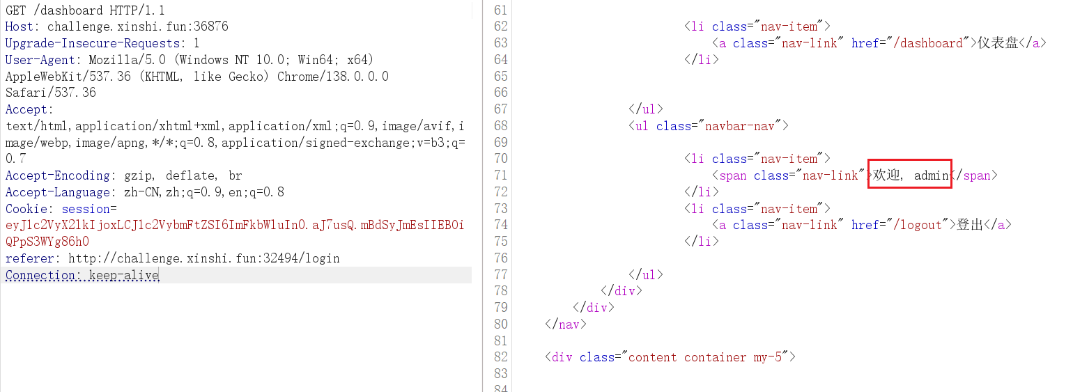 尝试用密钥解密,能够直接被解密,是使用的 Flask 默认 itsdangerous 签名,没有其他加密