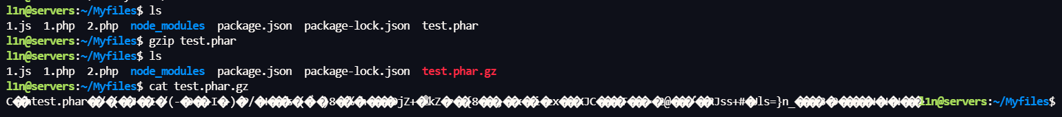 已知程序提供文件上传和文件包含接口 有一个关于 DeadsecCTF 2025 赛关于 include 与 phar 特性的利用,生成一个 phar 文件把他打包成 gz 文件后,当 include 包含 gz 文件时,php 会默认把这个 gz 文件解压回 phar 进行解析,而压缩后的 gz 文件不存在明文关键字,可以绕过许多黑名单 生成 phar,并压缩为 gz