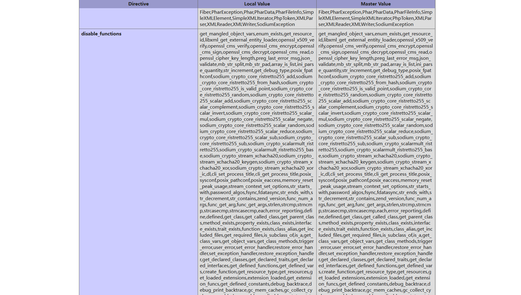 上传木马,?down=/tmp/test.phar.gz 文件包含,网站目录下就生成了 shell.php,看一下配置信息 n+ 多函数被禁用了